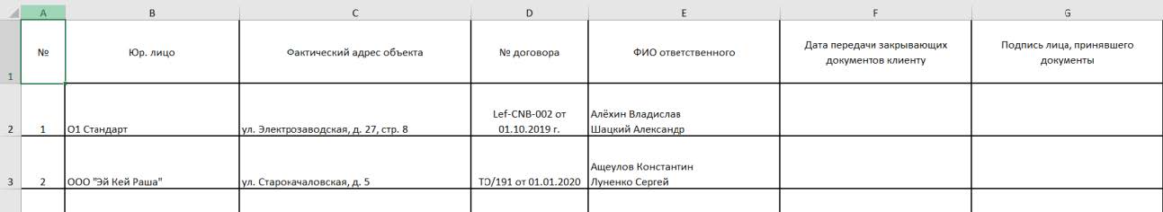 - Выгрузить объекты – получить обходной лист актуальных объектов с полями для подписи