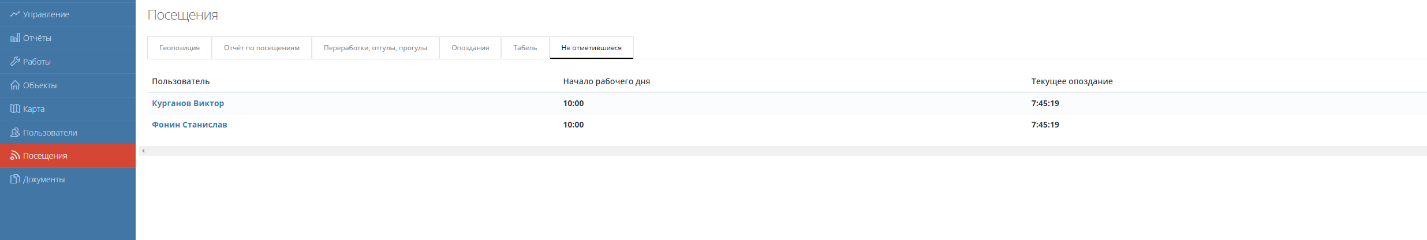 Прогулы проставляются автоматически в 6:00 следующего дня для пользователей, которые должны фиксировать геолокацию, но не записывали её весь рабочий день и не имели причин отсутствовать на рабочем месте (отпуск, больничный, прогул и т.п.).